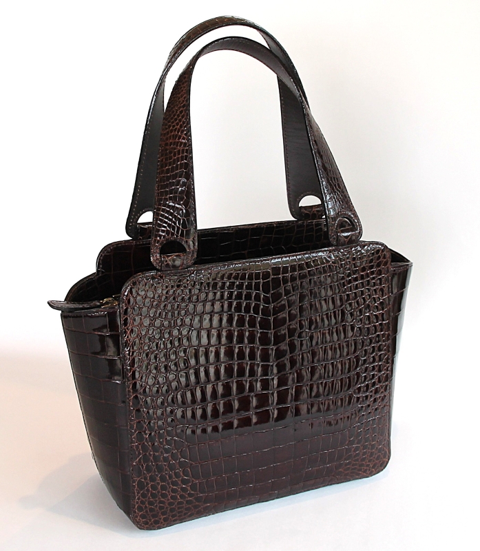 クロコダイルハンドバッグ(ダークブラウン)