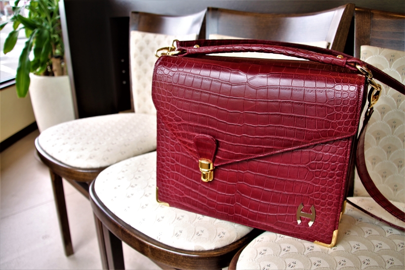 男性の客お様から「赤ワイン色」の、クロコダイルバッグをご注文頂いた。