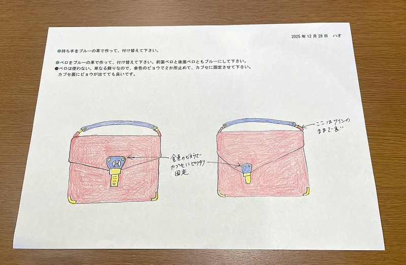 持ち手だけ新たに造ろうにも、同じ革がありません。